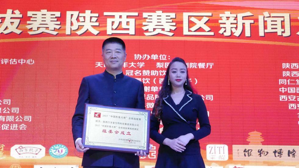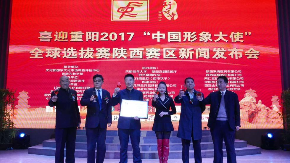 在中国传统登高、祭祖、敬老的重阳节来临之际,本次陕西赛区新闻发布会是以国际产业的发展和世界经济一体化为背景,由文化部国家文化市场调查评估中心、香港孔教学院指导,由中国记录通讯社主办,陕西行方堂生物科技集团有限公司联合中国陕西新丝路企业发展促进会承办,天朗老年大学、梨园宫剧院餐厅协办的一项在世界华人范围内进行的具有独立知识产权的国际性顶级品牌赛事,本次陕西赛区的选拨得到五行能量饮(西市饮子)、龙凤呈祥西凤酒、中老年微电影协会、漳州片仔癀药业股份有限公司、陕西千金药局集团有限公司、中国面条博物馆有限公司、陕西宋清医药有限公司、陕西粢醍酒业有限公司、西安社区文化研究会的大力支持。