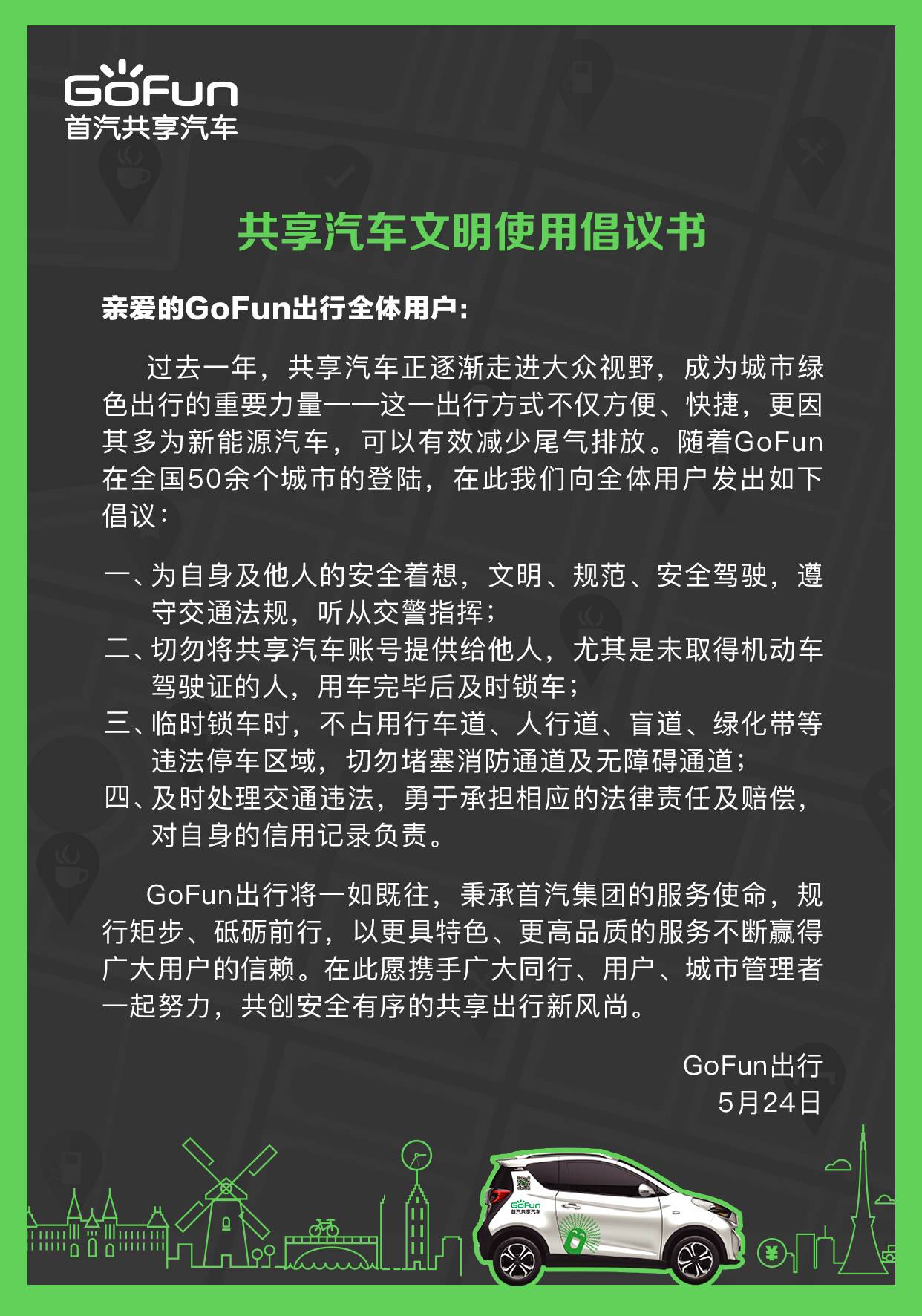 GoFun出行发布全国首份《共享汽车文明使用倡议书》