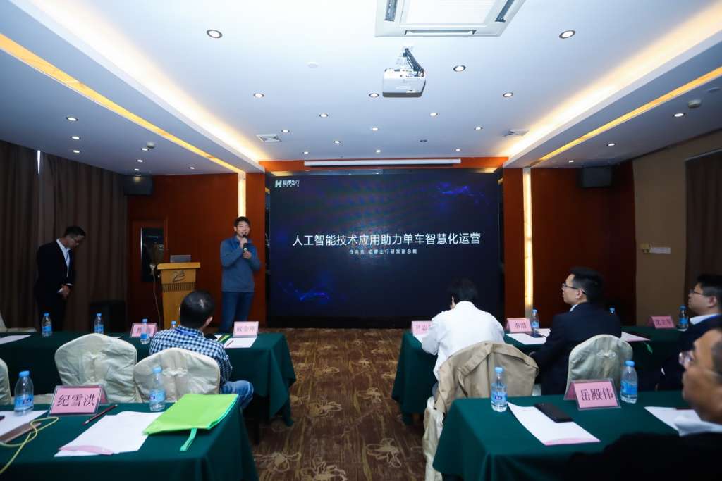 (图为任亮亮在发表“人工智能技术应用助力单车智慧化运营”的主题演讲)