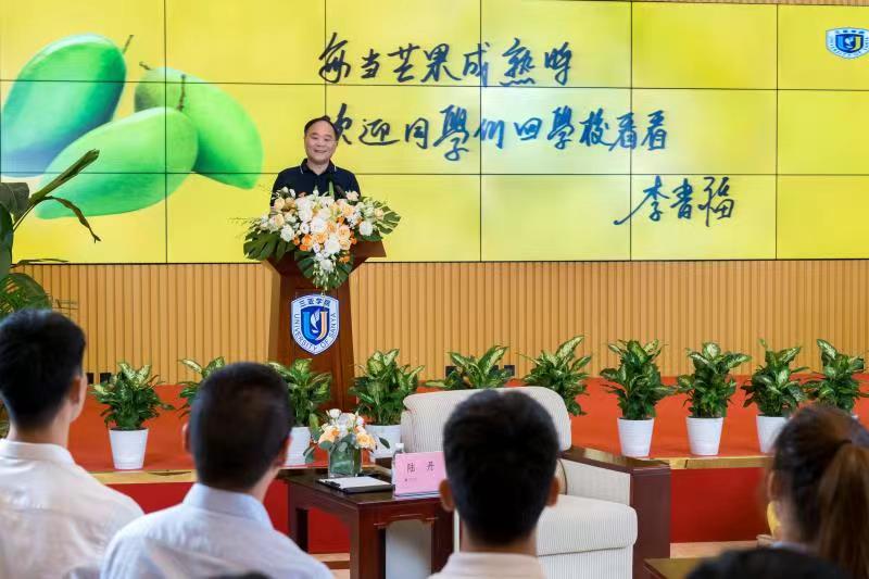 毕业典礼现场,李书福董事长为芒果乐队授旗,还为三亚学院送出了专属寄语:每当芒果成熟时,欢迎同学们回学校看看!