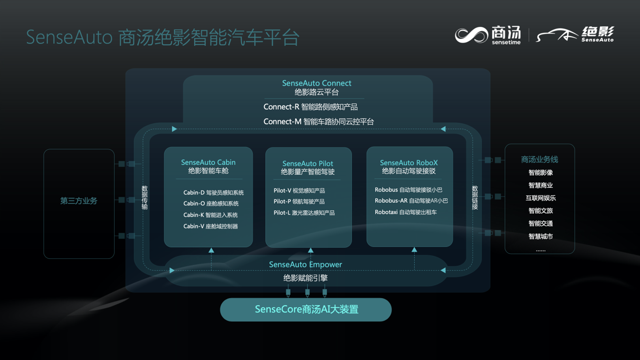 除了首发SenseAuto Cabin-O商汤绝影车舱乘员健康检测产品,SenseAuto商汤绝影智能汽车平台亦在本届创交会现场完整亮相。以SenseCore商汤AI大装置为基石,SenseAuto商汤绝影智能汽车平台涵盖超过1400个AI模型,从车端、路端、云端,全面赋能汽车智能化。