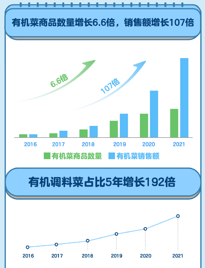 自从盒马把有机菜的价格打下来,用户的消费习惯便开始卷起来。在盒马,除了绿叶菜、茄瓜果,葱、姜、蒜、香菜、茴香叶、迷迭香、薄荷等有机调味菜的销量也在不断增长,部分盒区房用户已经进入全面有机时代。