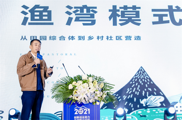 中国土地美学复兴计划发起人胡应兵以《5+1创新模式乡村振兴背景下助力创新创业全面发展》为主题进行演讲,他表示在城市化的浪潮下,乡村生活面临严重冲击,产业也陷入了前所未有的困境,他以渔湾村为例,告诉我们乡村改造应具有自身特色,以发展为抓手,开展乡村建设,城市资本不应是开发乡村,而必须是服务乡村,运用城市资本重塑乡村发展动力,实现城乡融合,循环共生。
