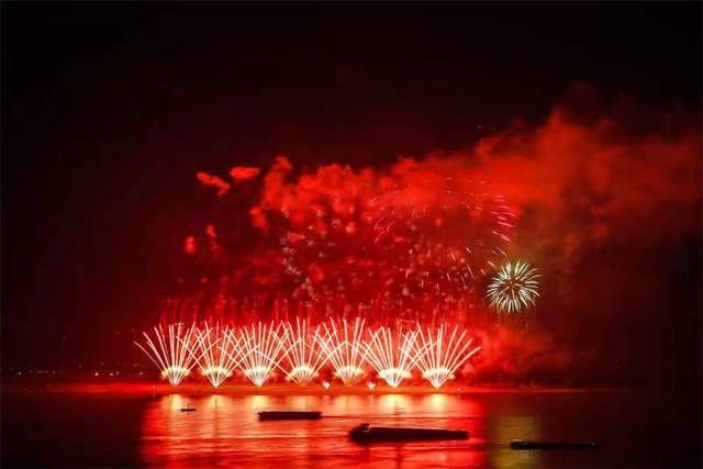 江边缤纷绚丽烟火秀,市民共享欢乐时刻