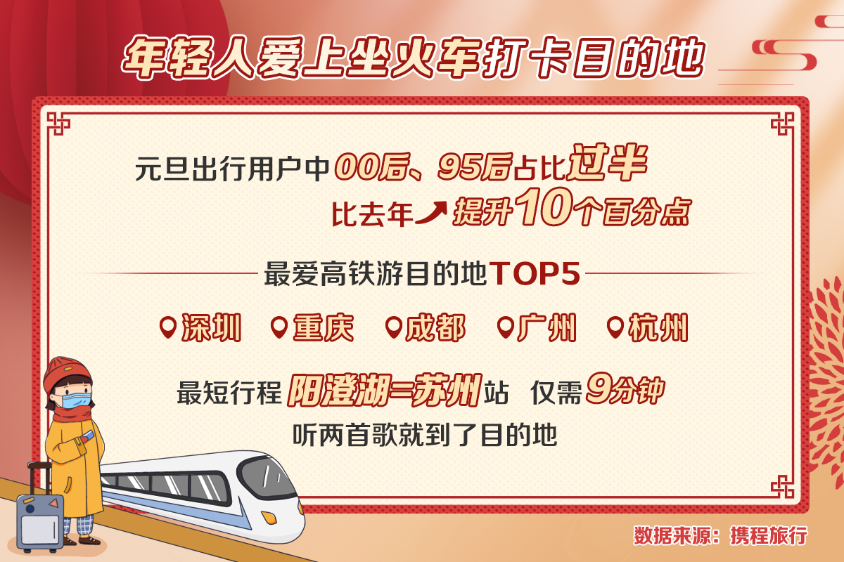 携程发布2022元旦假期报告:95后00后爱搭高铁丈量周边 新一线城市成热门