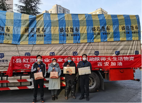 当前,正值西安疫情防控形势最严峻的时刻,为保障陕西师范大学师生的生活物资需求,陕西省榆林市佳县人民政府紧急筹集4吨价值16万元的生活物资(包括白菜3吨,白萝卜、莲花菜、洋葱、土豆和红枣1吨,还有挂面、杂粮1000多盒,葵花油250桶),连夜驰援,于1月12日早上到达陕西师范大学。