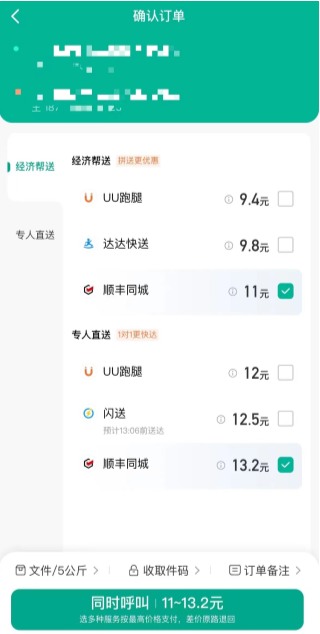 滴滴快送当前提供“经济帮送”和“专人直送”两种即时配送服务,前者为拼货模式,价格更实惠;后者为一对一专人直送,速度更快。