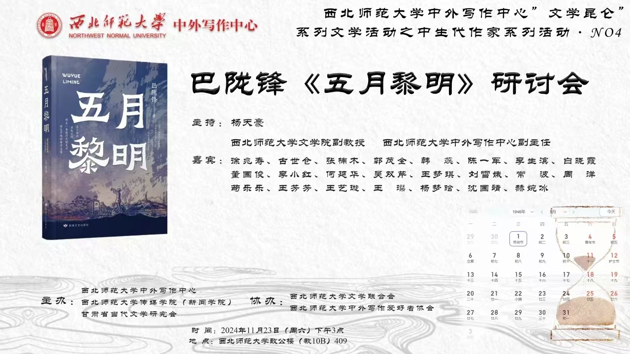 预告 | 巴陇锋《五月黎明》研讨会|“文学昆仑”系列文学活动·No.4